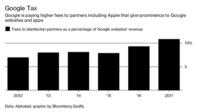 Google đang phải chi trả nhiều hơn để công cụ tìm kiếm của mình xuất hiện trên nhiều thiết bị khác nhau. Chỉ tính riêng năm ngoái, công ty đã trả 7,2 tỷ USD chi phí cho Apple và các nhà sản xuất điện thoại Android.