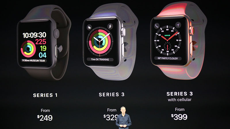 Apple Watch Series 3 sẽ được sử dụng vi xử lí 2 nhân thế hệ mới và Siri giờ đây đã có thể nói chuyện với bạn ngay trên chiếc đồng hồ này. Bên cạnh đó hệ điều hành watch OS4 sẽ giúp dòng Apple Watch đo nhịp tim chính xác hơn. Thiết bị này sẽ có nhiều phiên bản khác nhau với nhiều dây đeo rất bắt mắt.