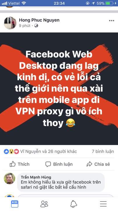 Trên Facebook app cũng vậy, truy cập lúc được lúc không, thậm chí Facebook Messenger cũng không thể gửi hình ảnh được.