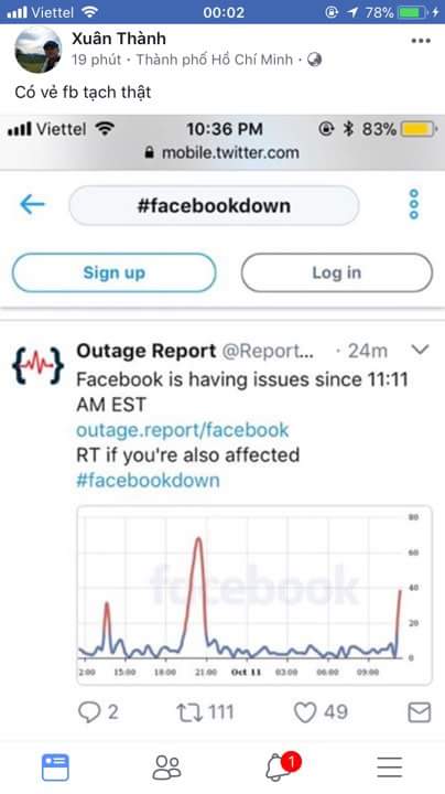 *Cập nhật: Vào khoảng 00:05 ngày 12/10, Facebook đã hoạt động trở lại tuy nhiên load còn chậm.