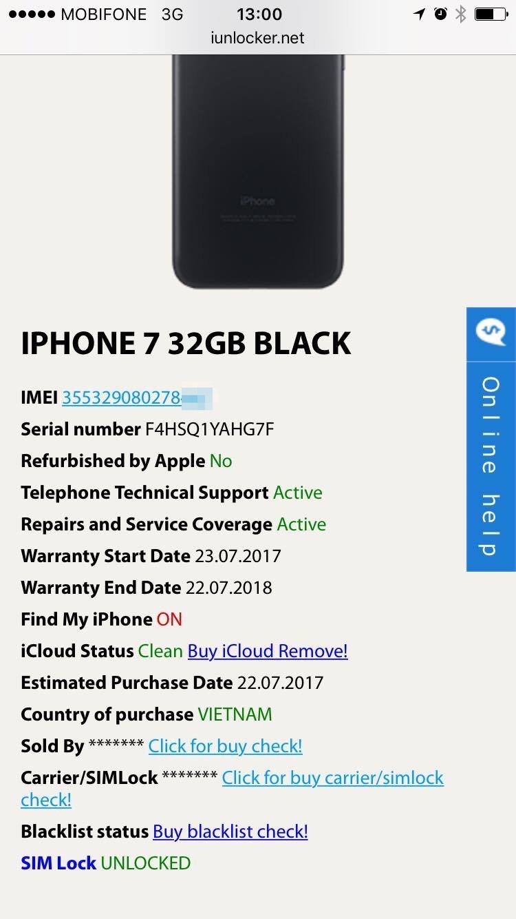 Mọi thông tin từ chiếc máy đó sẽ được hiện ra rõ mồn một trước mắt bạn như: Ngày kích hoạt bảo hành, ngày hết hạn bảo hành, có bị iCloud ẩn hay không, nơi bán và đặc biệt là máy Lock hay Quốc tế (SIM Unlock là máy quốc tế, còn lại là Lock).