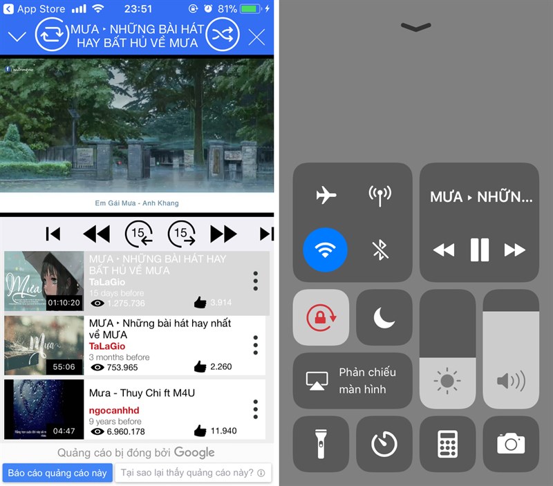 Ngay lúc này, video bạn đang xem đã có thể chạy nền khi khóa hay tắt màn hình. Nếu gặp phải vấn đề ngừng phát tạm thời bạn có thể mở "Trung tâm kiểm soát" bằng cách chạm tay kéo từ mép dưới màn hình lên trên > Tiếp đến chọn vào biểu tượng Play để phát lại video.