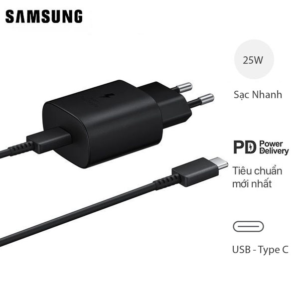 Sạc Nhanh Samsung 25W Chuẩn PD C-to-C Bản Cho Galaxy S10 5G Fullbox - Chính Hãng - Đen