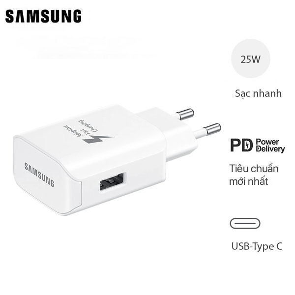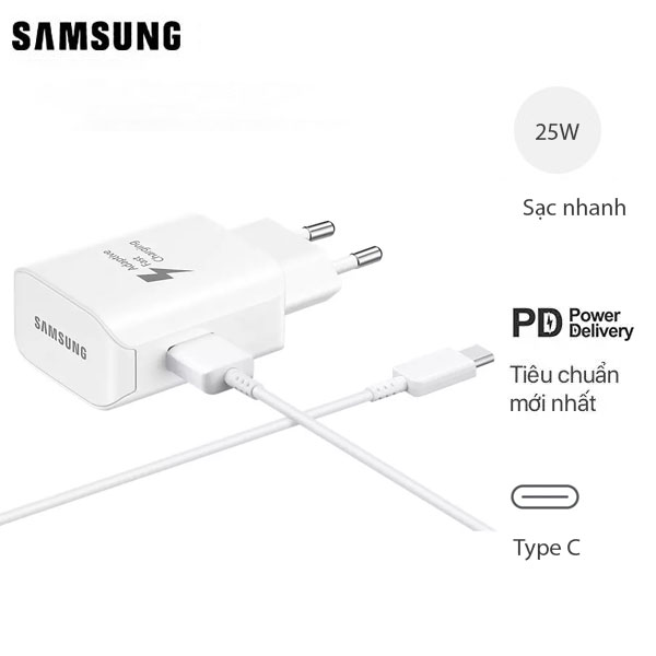 Củ Sạc Nhanh Samsung 25W C-to-C Bản Cho Galaxy S10 5G Fullbox - Chính Hãng - Trắng