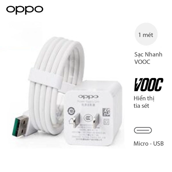 - 01 cáp sạc nhanh Oppo VOOC, 01 củ sạc nhanh Oppo VOOC