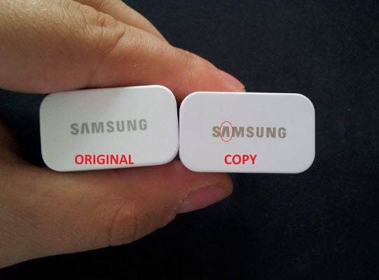 Chữ A trong chữ Samsung ở hàng nhái không rõ ràng