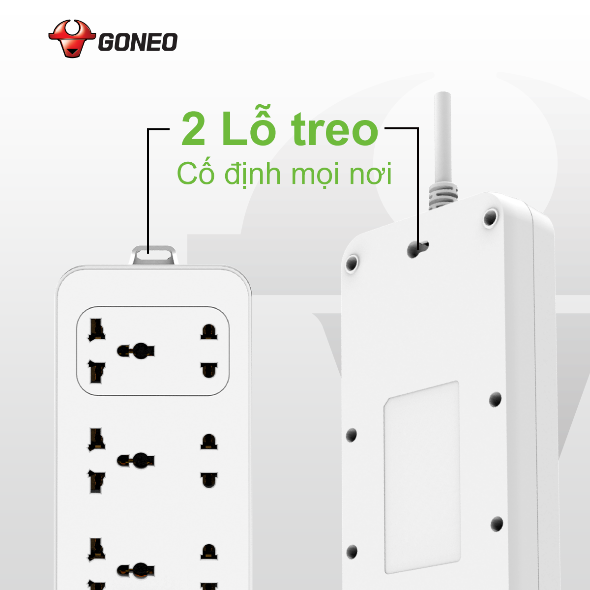 Ổ Cắm Điện Gongniu 6 Ổ Đa Năng 1 Công Tắc – Công Suất 10A/250/2500W – Trắng – Chính Hãng (N1330)