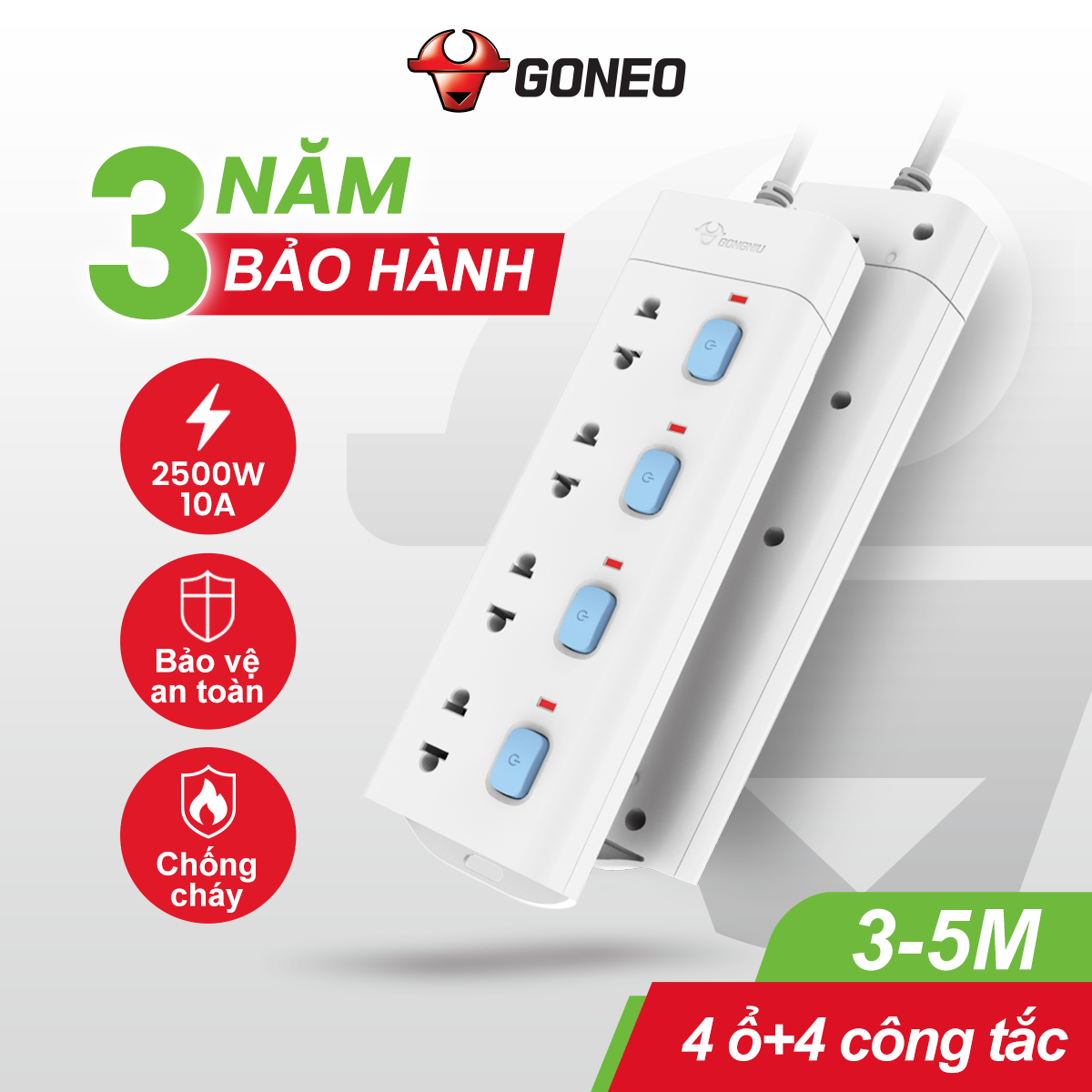 Ổ Cắm Điện Gongniu Đa Năng 4 Ổ 4 Công Tắc – Công Suất 10A/250/2500W – Trắng – Chính Hãng (V3040)