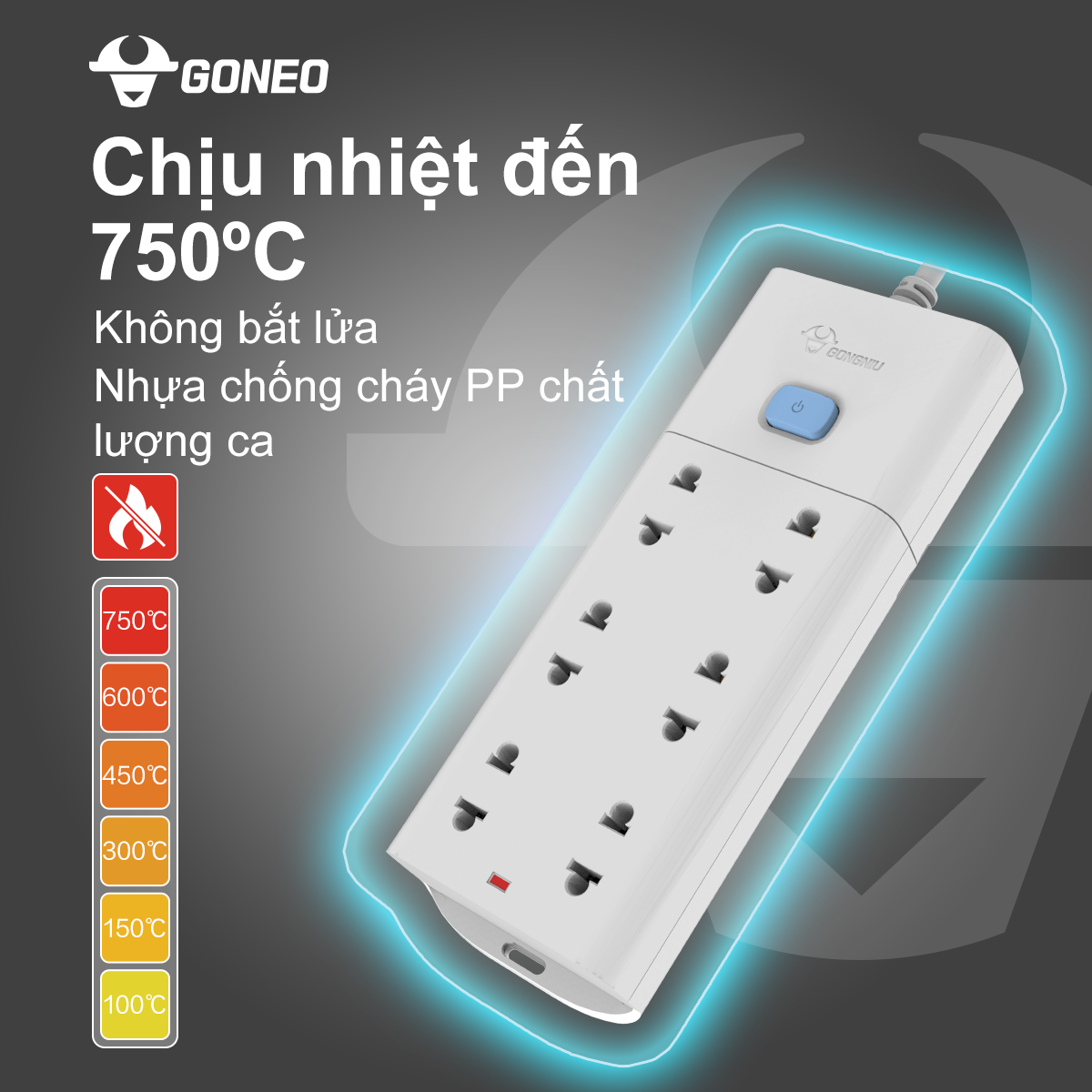 - Ổ cắm Gongniu sử dụng nhựa PP chất lượng cao, chịu nhiệt lên đến 750 độ C