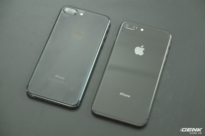 So sánh với iPhone 7 Plus Black (trái), người dùng không thể phân biệt với iPhone 8 Plus nếu chỉ nhìn từ mặt trước