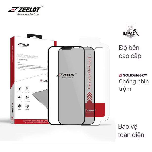 SOLIDsleek™ Công Nghệ Kính Trong Retina -Công nghệ chính tạo nên miến dán Cường Lực chống nhìn trộm Zeelot cho iPhone 13
