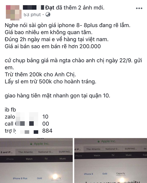 Nếu như trước đó iPhone 8 được chào giá ở mức 31 triệu đồng thì giờ đây có thương lái báo giá chỉ còn 17.5 triệu đồng, rẻ hơn cả giá mua ở cửa hàng. Nếu xét với giá mua iPhone 8 tại ngay Apple Store, thương lái gần như hoàn vốn.