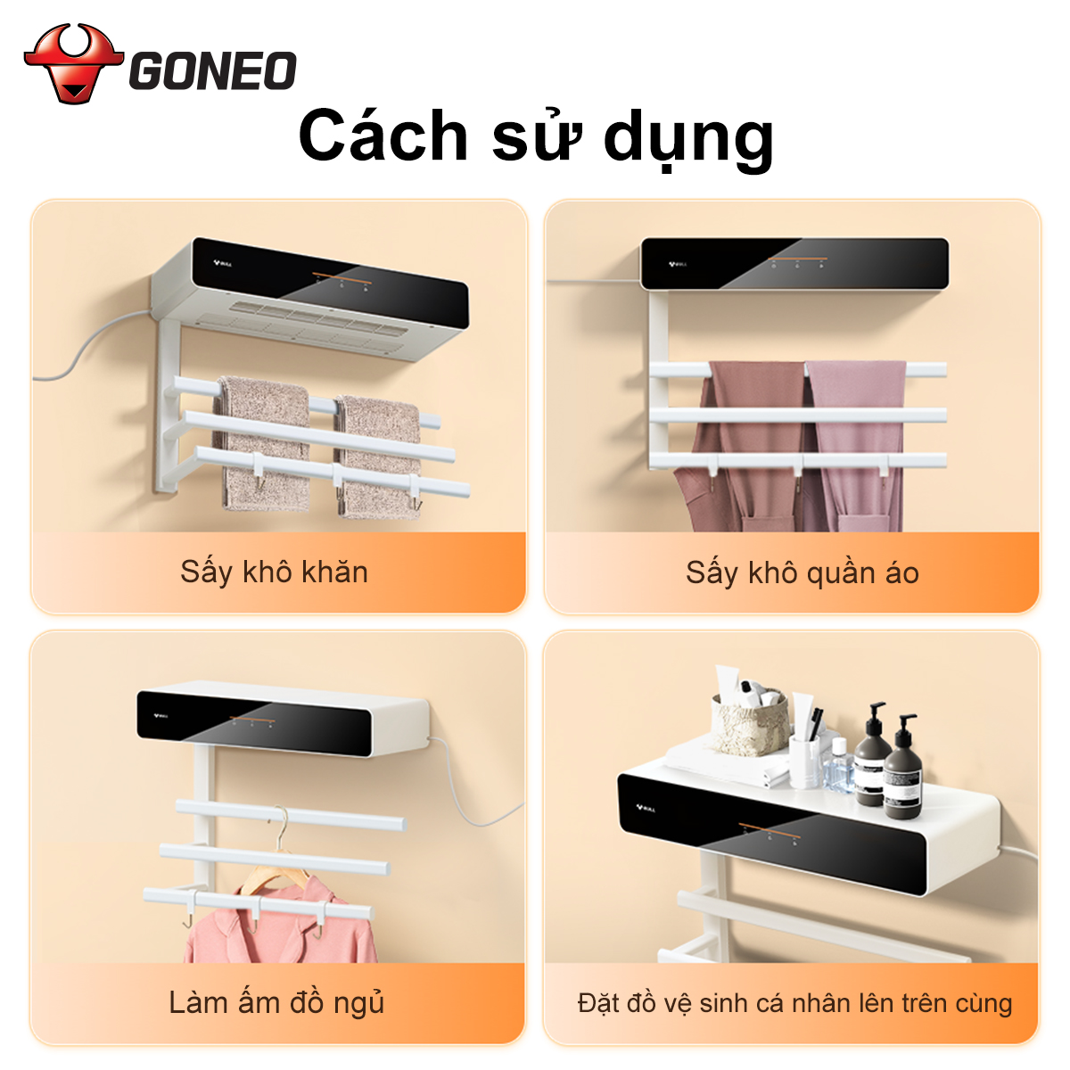 Giá treo khăn điện thông minh Gongniu cho phòng tắm của bạn thêm tiện nghi và sạch sẽ hơn. Với khả năng sấy khô và ngăn ẩm mốc hiệu quả, bạn không còn phải lo lắng về việc treo khăn ướt hoặc bị ẩm mốc nữa. Điểm đặc biệt của sản phẩm này là tính năng cảm ứng 1 chạm, cho phép bạn dễ dàng điều chỉnh độ cao và kiểm soát được nhiệt độ chính xác. Với công suất lên tới 500W, sản phẩm có thể làm khô những chiếc khăn tắm của bạn chỉ trong vài giờ. Sản phẩm được trang bị hai chế độ để lựa chọn - tiết kiệm điện hoặc tối đa hiệu quả - giúp tiết kiệm chi phí sử dụng hàng tháng. Và với thiết kế gấp gọn tiện lợi, sản phẩm không chiếm quá nhiều không gian trong nhà tắm. Vì vậy hãy trang bị ngay cho gia đình mình Giá treo thông minh Gongniu để mang lại trải nghiệm thỏa mái hơn!