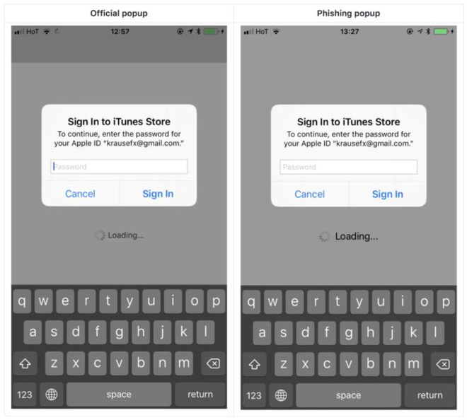 Điều này thực sự rất đáng lo ngại khi mà người dùng bất ngờ bị yêu cầu tiết lộ một trong những loại mật khẩu nhạy cảm, quan trọng bậc nhất của mình tại một thời điểm bất kỳ như vậy. Felix Krause, một lập trình viên iOS đồng thời cũng là nhà sáng lập Fastlane, đã phát hiện ra rằng các hacker có thể dễ dàng tạo ra những khung thông báo giả mạo để lừa người dùng cung cấp mật khẩu của họ cho bọn chúng.