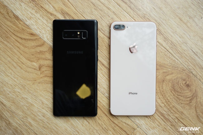 Còn đây là iPhone 8 Plus khi đặt cạnh chiếc phablet mới nhất của Samsung là Galaxy Note8