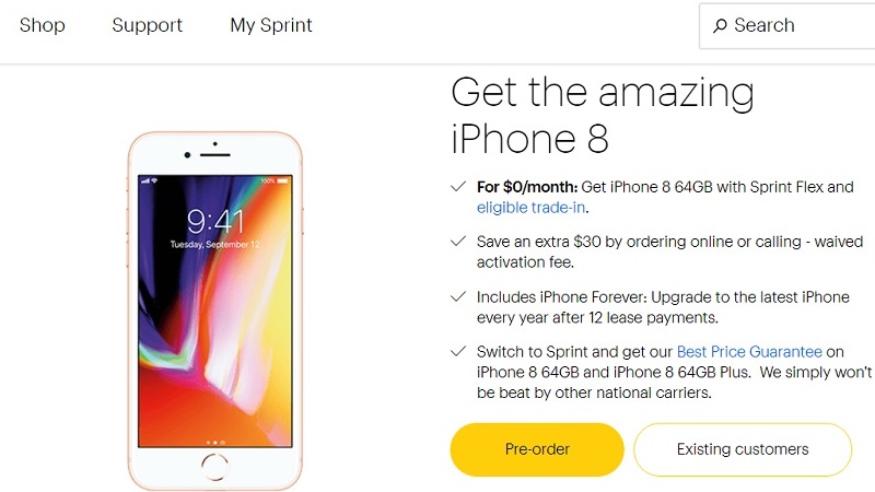 Nhà mạng Sprint của Mỹ, đang đưa ra chương trình trợ giá cho người dùng mua iPhone 8 64GB với giá 0 đồng.
