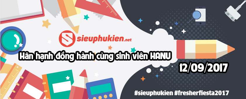 Các bạn sinh viên đại học Hà Nội ơi, vào ngày 12/9 này, Siêu Phụ Kiện sẽ có một gian hàng tại ngày hội Fresher Fiesta 2017. Các bạn hãy đến thăm gian hàng Siêu Phụ Kiện để được nhận được nhiều ưu đãi và phần quà giá trị nhé: