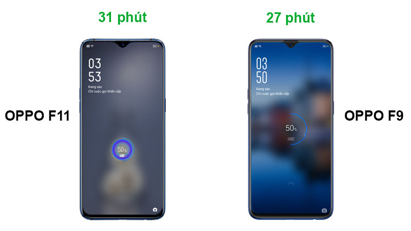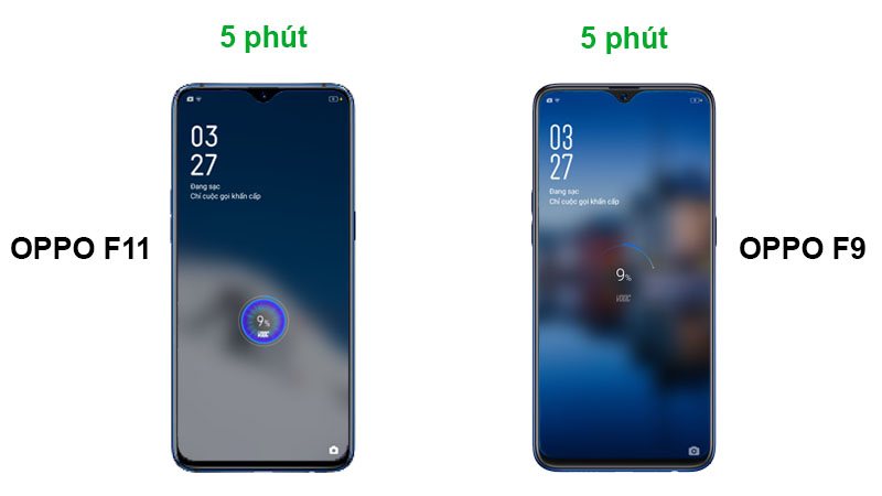 So sánh tốc độ sạc VOOC 3.0 trên OPPO F11 với VOOC 2.0 trên OPPO F9