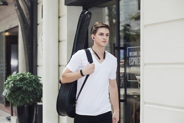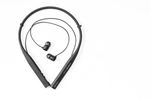 Phần vòng cổ này vẫn được làm đa phần bằng nhựa, nhưng hãng đã quyết định dùng nhựa sần chứ không phải nhựa bóng như các phiên bản trước, không còn bám vân tay và bụi bẩn dễ dàng nữa. Phần nhựa uốn cong được có lẽ được gia cố bằng kim loại nên có lực kẹp vào, nên khi đeo lên tai nghe ôm vào người dùng hơn. Phần điều khiển của tai có một nút nhận cuộc gọi và chơi/ngừng nhạc, 2 nút tăng giảm âm lượng kèm chuyển bài hát. Phần sạc micro USB được dấu sau một lớp nhựa để tránh bụi.Phần vòng cổ này được trang bị motor rung nhỏ nhằm thông báo khi tai nghe nằm ngoài vùng phủ sóng của nguồn phát, hay có cuộc gọi tới. Lực rung cũng khá vừa phải nên không có cảm giác nhột.